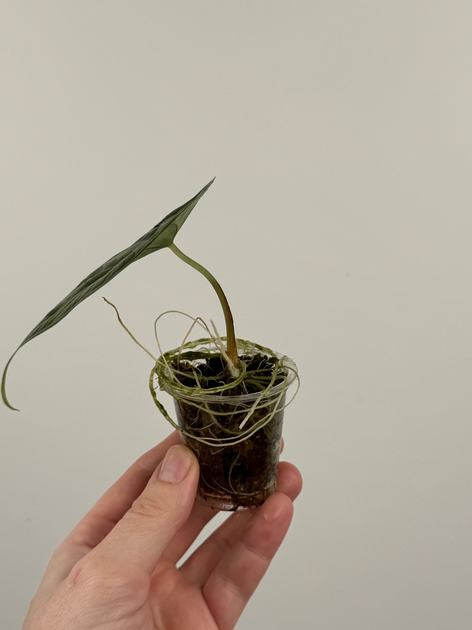 Grown in sphagnum moss in 2 OZ plastic cup.