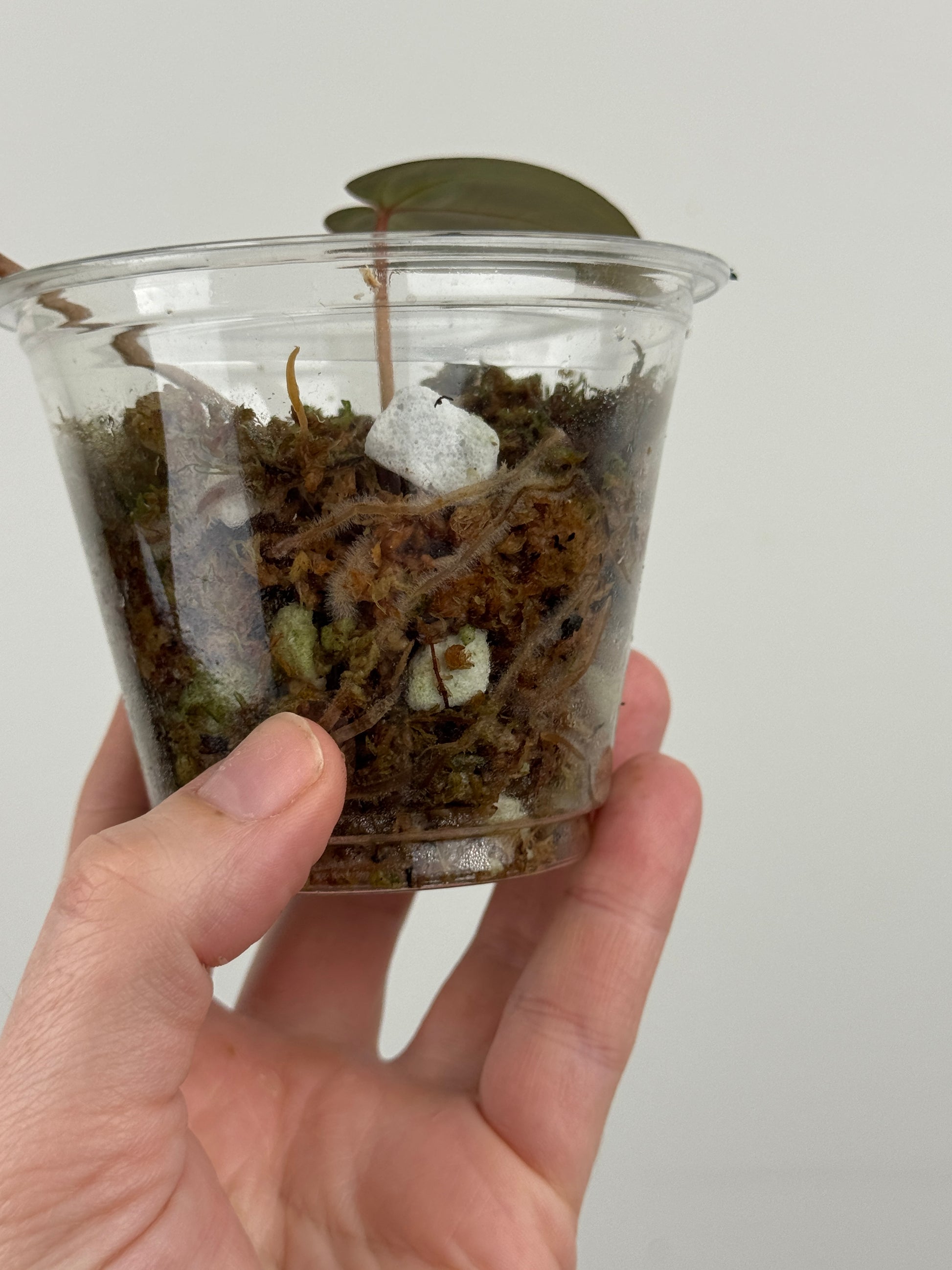 Grown in sphagnum moss in plastic cup.