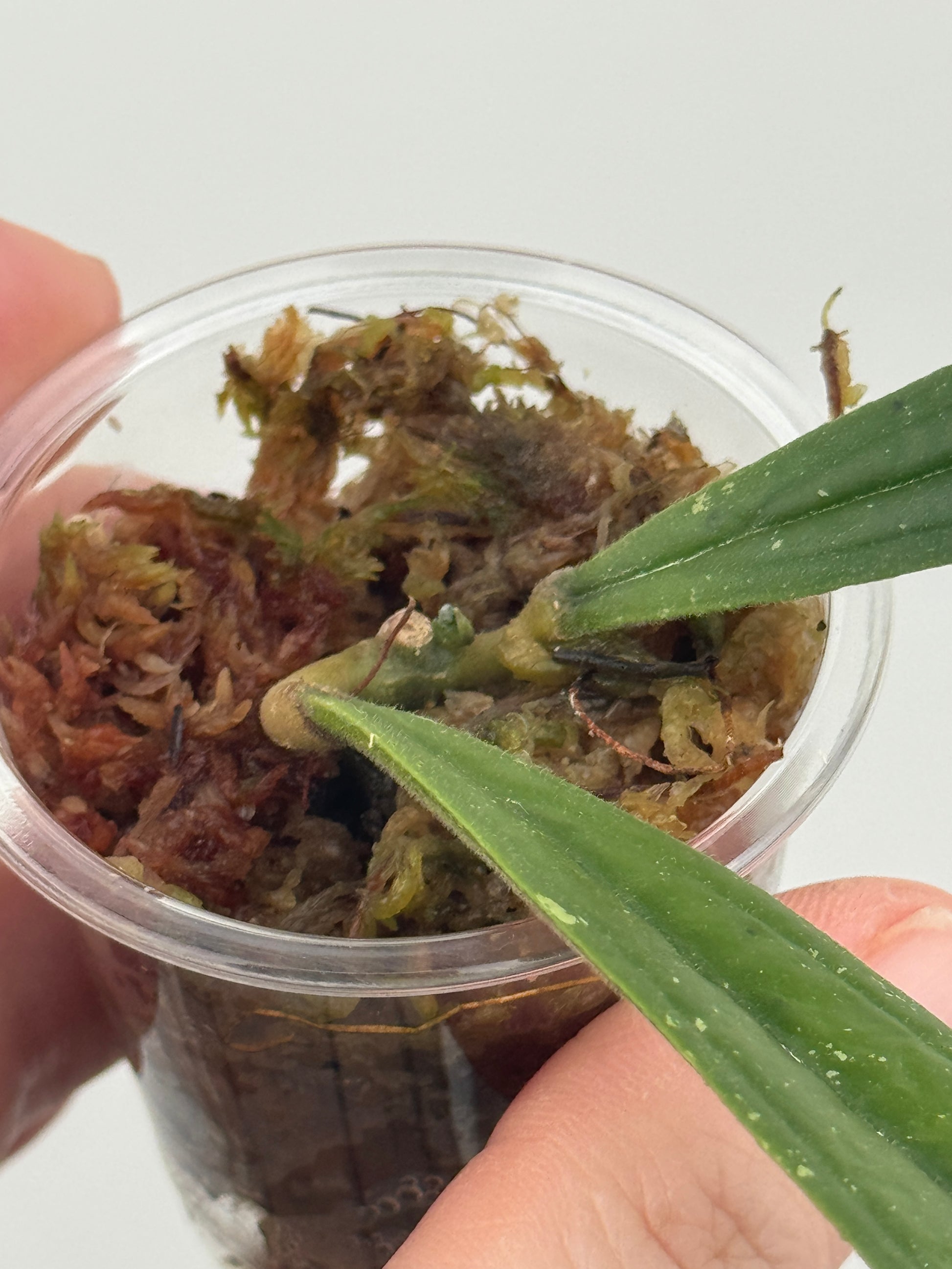 Grown in sphagnum moss in 2 OZ plastic cup.